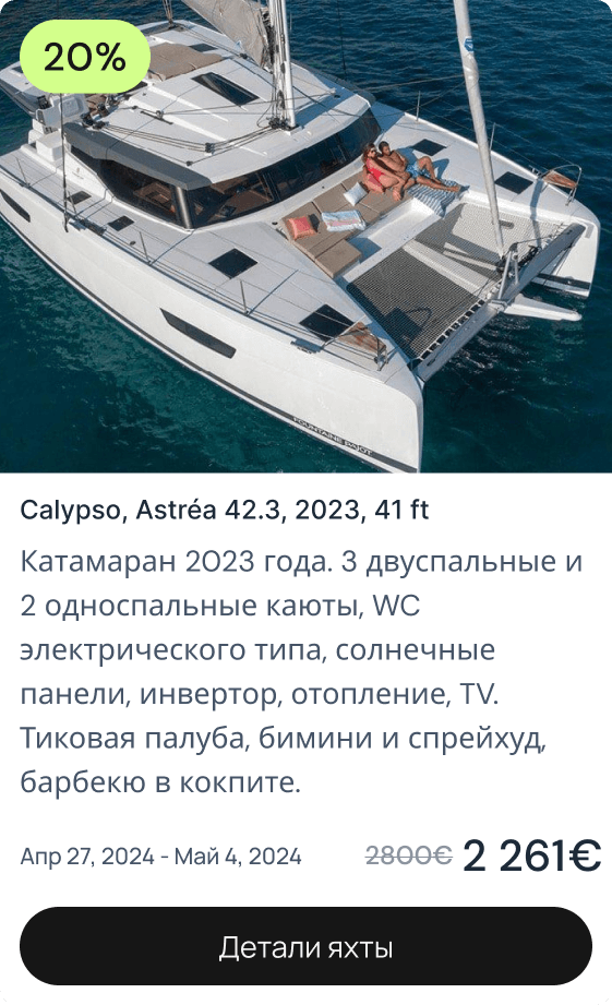 Оставьте заявку нашему специалисту, мы подберем для вас яхту и сообщим, когда цена будет наиболее привлекательной.